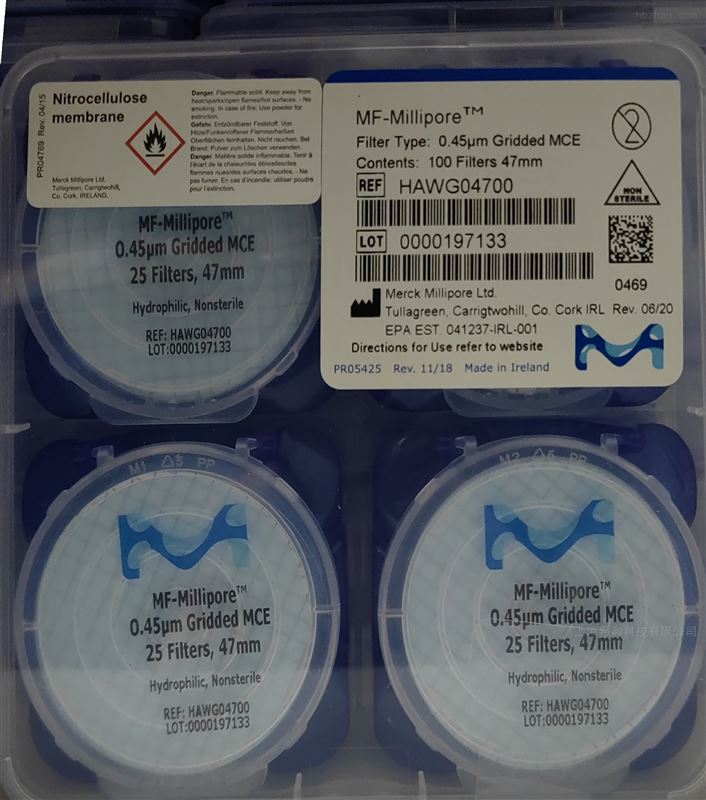 醋酸纤维素和硝酸纤维素的混合物不具有生物活性,使 MF-Millipore 表面滤膜成为分析和研究应用中zui广为使用的膜之一。 不含 Triton 表面活性剂的 MF-Millipore 滤膜包含极少量的润湿剂,其水溶出物比标准的 MF-Millipore 滤膜低。