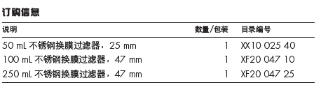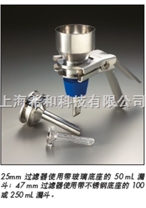 用于真空过滤液体,进行细菌或颗粒污染分析。 换膜过滤器可高温高压灭菌或火焰灭菌